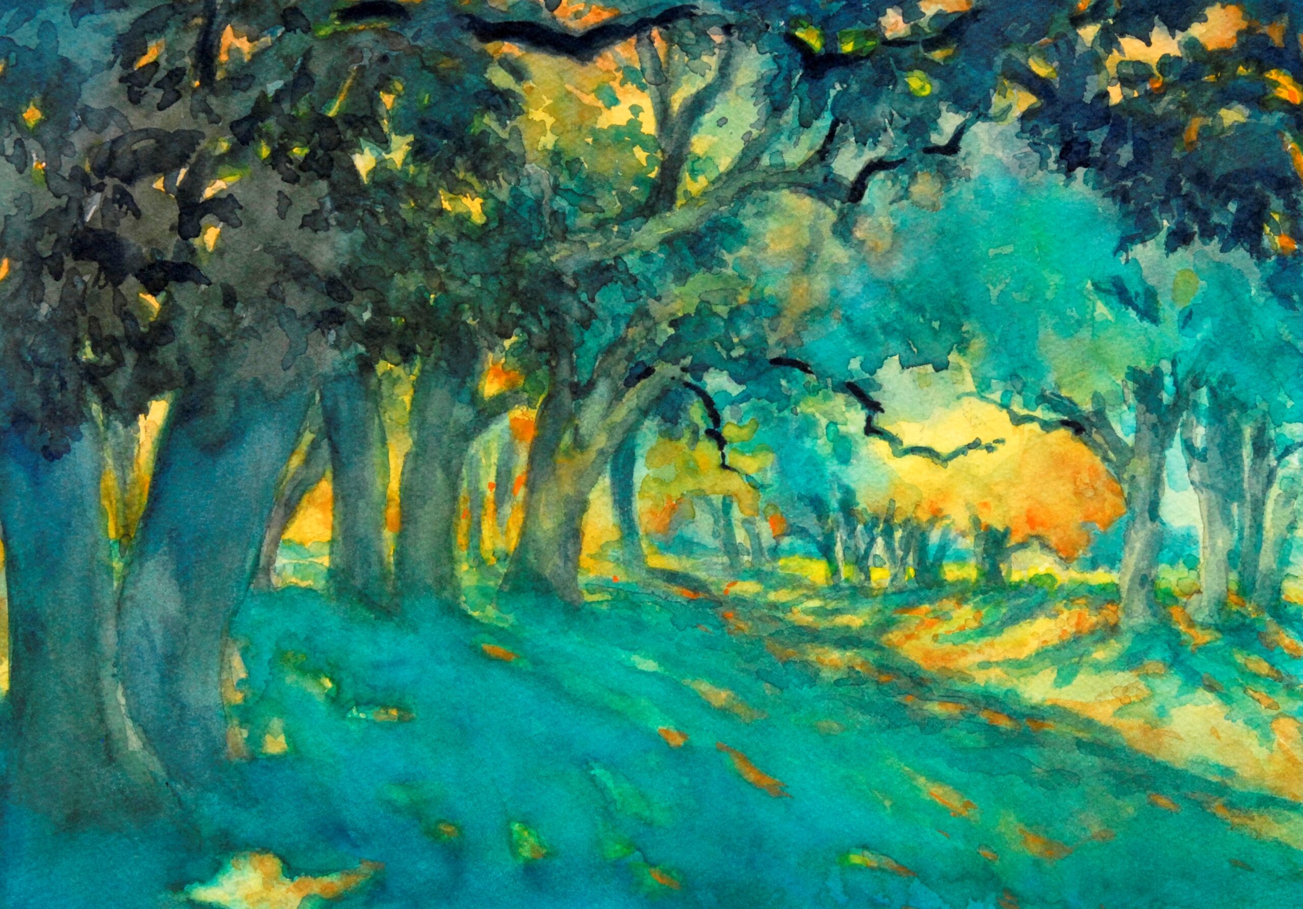 “The Trees Out Back, No. 1” , Watercolor, 15” X 11”