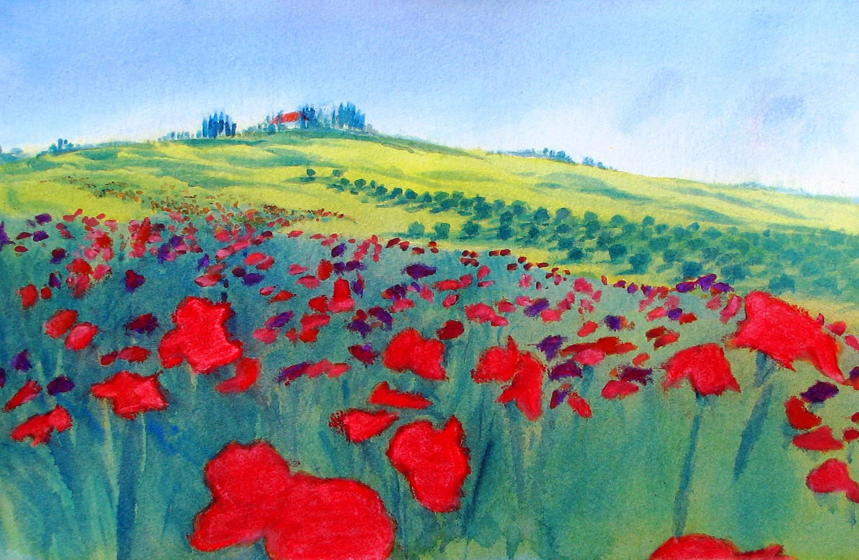 “Tuscan Poppies” , Watercolor, 22” X 15”