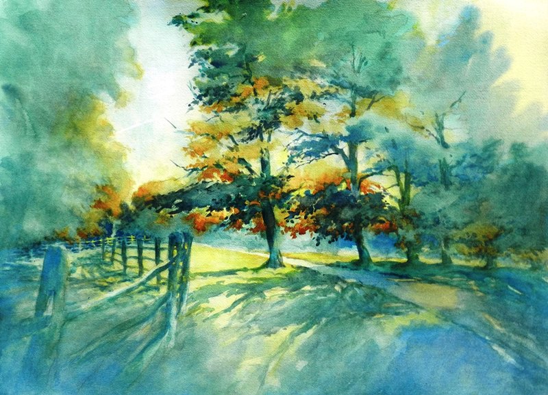 “The Trees Out Back, No. 1” , Watercolor, 15” X 11”